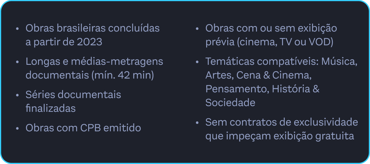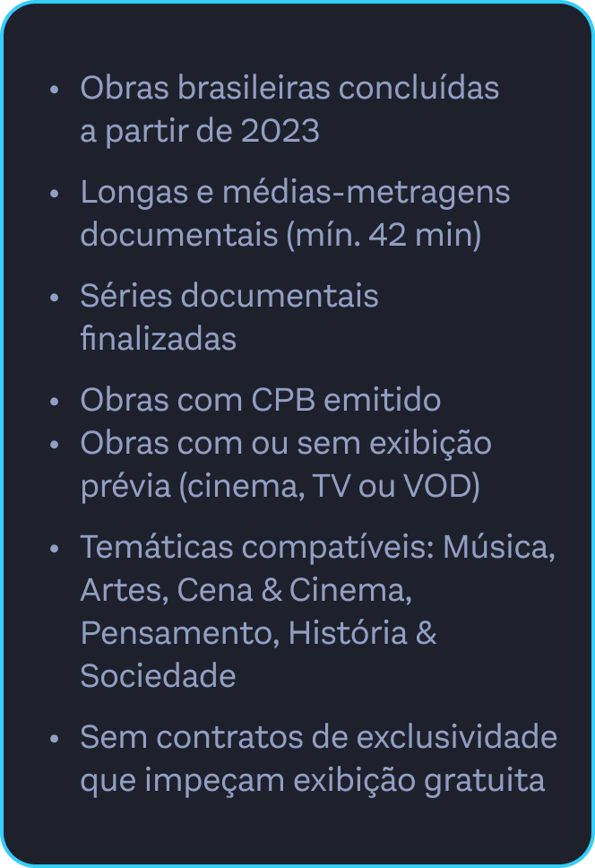 A Mostra Outras Janelas é dedicada a séries, médias e longas-metragens brasileiros produzidos a partir de 2023, alinhados às temáticas curatoriais do Canal Curta!.
